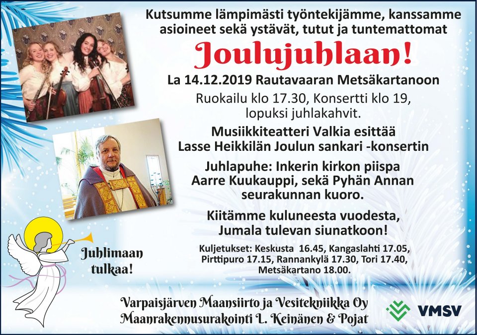 (16.12.2019: Joulujuhlan tallenne on viimeisteltävänä ja se tulee valmistuttuaan VMSV:n Youtube-kanavalle näkyviin.)